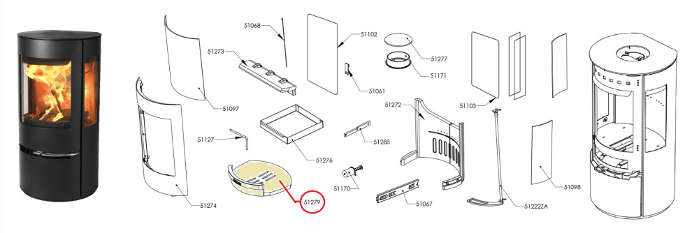 Náhradní litinový ročt pro kamna ADURO 17 č. 102451101-1, objednací kód 51279