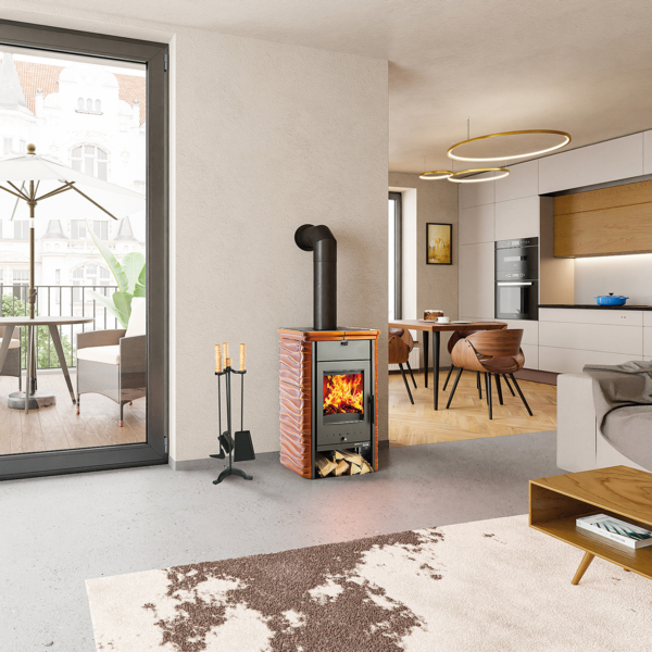 HAAS+SOHN - FARO, černá, kachlový sokl, kachle hnědá