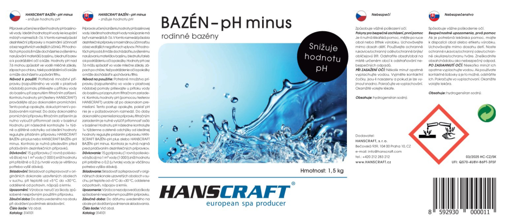HANSCRAFT BAZÉN - pH minus - 4,5 kg