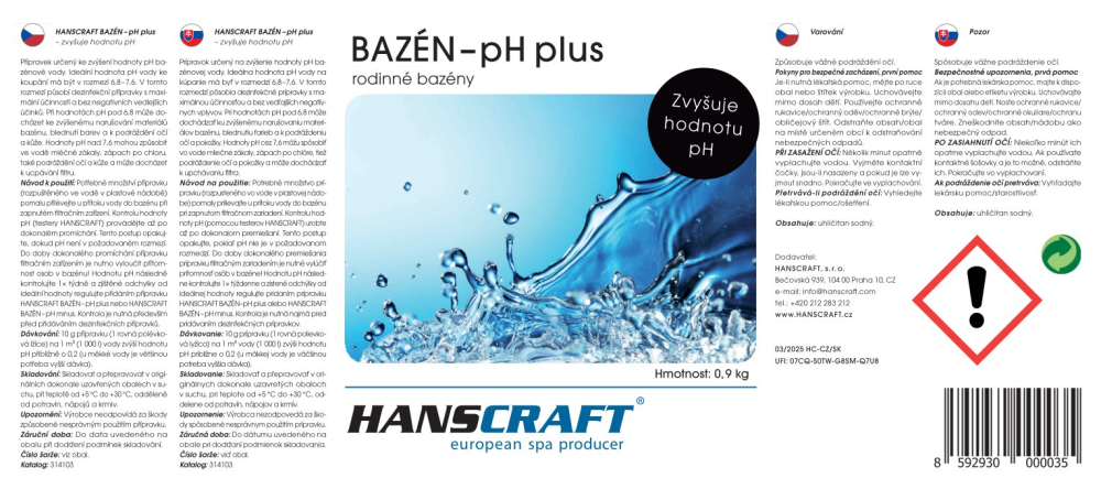 HANSCRAFT BAZÉN - pH plus - 3 kg