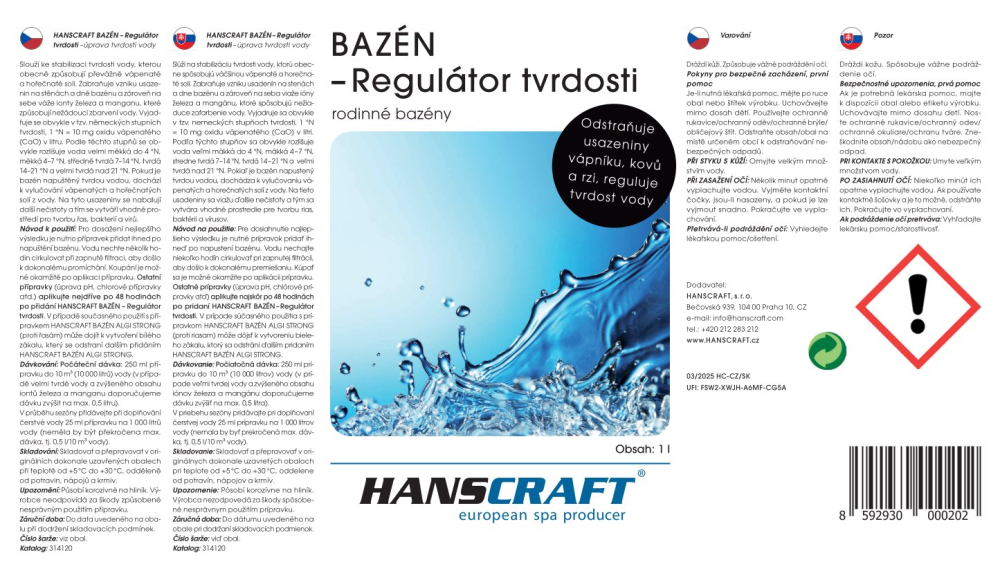 HANSCRAFT BAZÉN - Regulátor tvrdosti - 1 l
