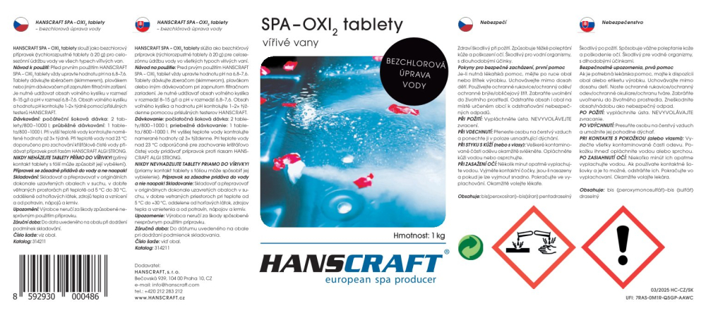CHEMIE PRO VÍŘIVKY SPA – OXI2 TABLETY OXI2 TABLETY slouží jako bezchlorový přípravek pro celosezónní údržbu vody ve všech typech vířivých van s pískovou nebo kartušovou filtrací.