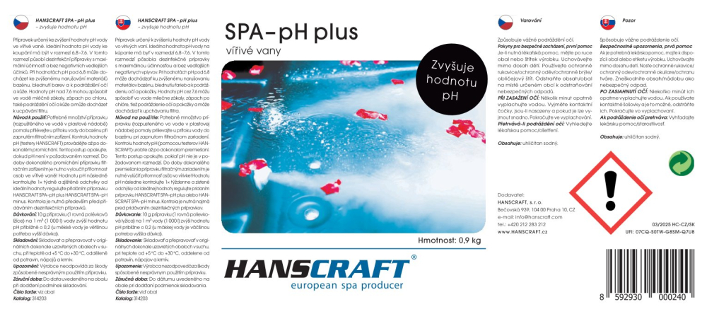 Dávkování: Pro zvýšení hodnoty pH o 0,2 je dávka 10 g / 1 m3 vody (1 rovná polévková lžíce).