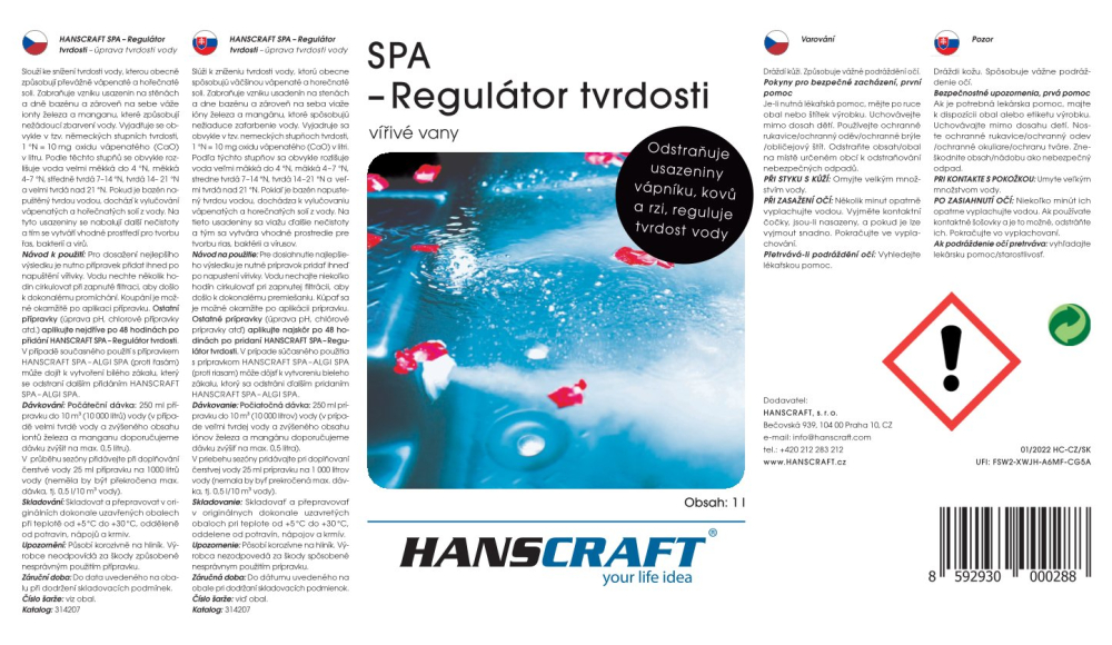 Dávkování: Při napuštění vířivky 25-50 ml přípravku na 1 m3 vody (dle tvrdosti). Při pravidelném provozu (při dopouštění vody) je dávka 25-50 ml přípravku na 1 m3 čerstvé vody.