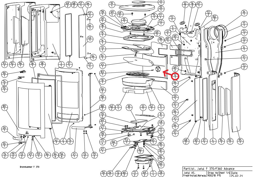 Zadní litinový vnitřní díl pro kamna JOTUL: