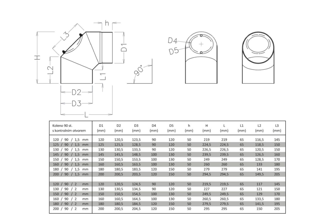 Koleno 90°/120 mm/1,5 mm s čistícím otvorem