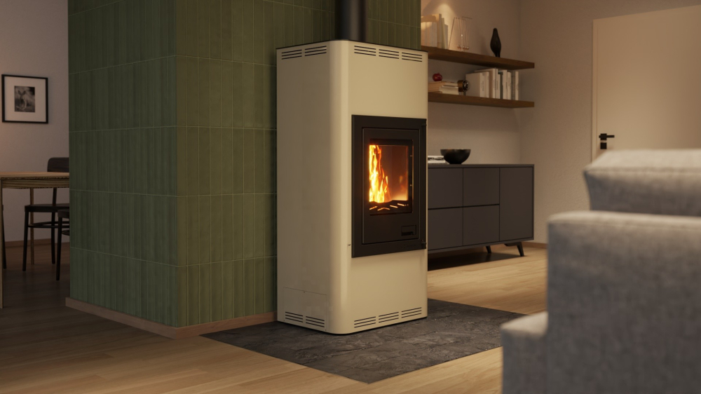 Krbová kamna AQUAFLAM ® 7 s výměníkem - krémová, automatická regulace
