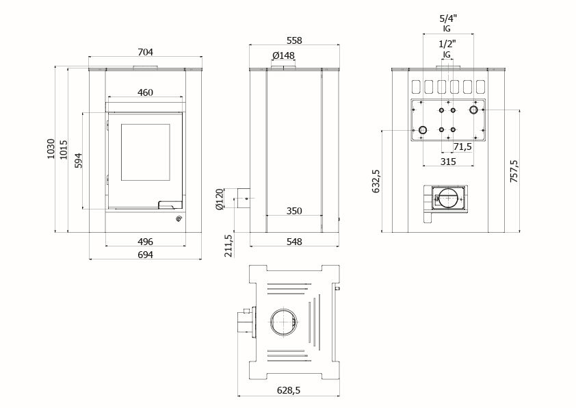 Krbová kamna AQUAFLAM VARIO ® LEND 11/5kW šedá