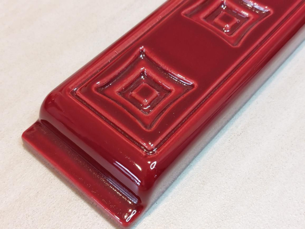 Fotografii kachle nám poskytl zákazník. Děkujeme. Odstín barvy je dle nasvícení kachle. Glazura je oprvdu BORDO.