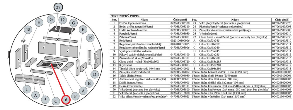 Díl je na pozici č. 6 ve výkresu, rošt o rozměrech 30x224x360 mm. Do topeniště je potřeba 1ks.