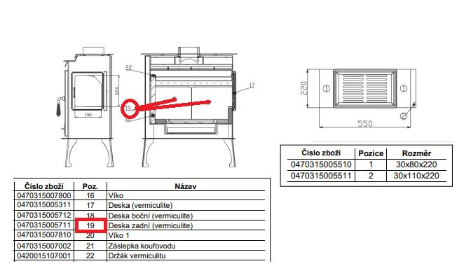 Objednávkový kod - starý - 470315005711 pro položku Deska zadní 25x260x290 / mat. VC 1000 ------------ Počet potřebných kusů do kamen nebo krbu : 2