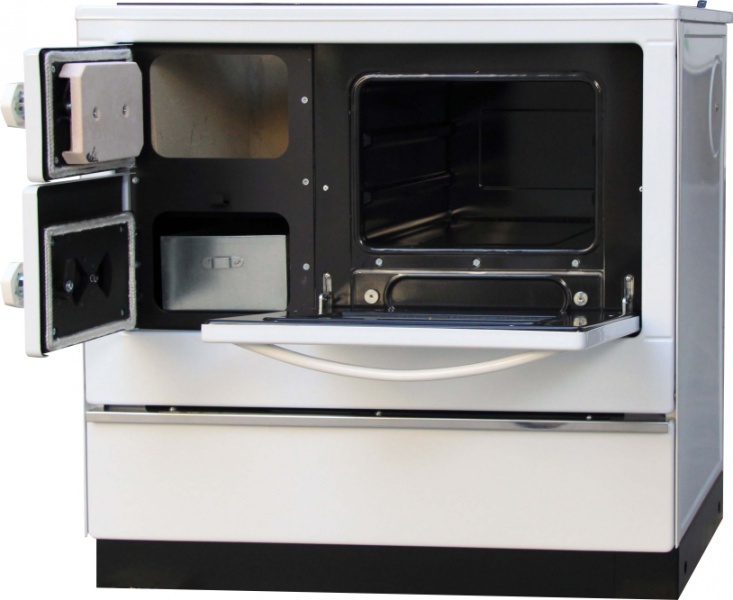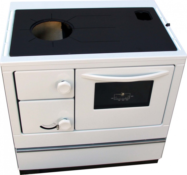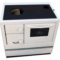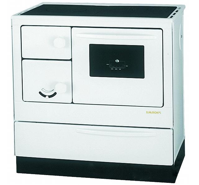 Sporák na tuhá paliva Thorma OKONOM 85 FIKO De Luxe bílý pravý bílá, sporák na dřevo v bílém smaltu, výkon 3,5 až 10,5kW (průměrný 7 kW), účinnost 75%, kouřovod DN120 - doboku, dozadu, nahoru, trouba na pečení