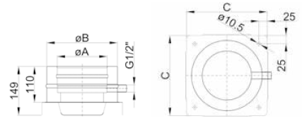 » Základová deska s bočním odtokem kondenzátu KS402 100 mm (síla plechu 1,0 mm + izolace 32 mm)